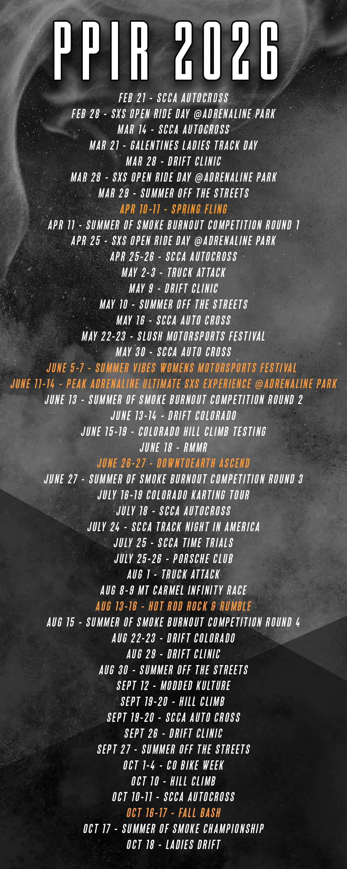 EXPERIENCE THE EXCITEMENT OF PROFESSIONAL-GRADE RACING, ADRENALINE-PACKED EVENTS, AND IMMERSIVE MOTORSPORTS ADVENTURES AT PIKES PEAK INTERNATIONAL RACEWAY.