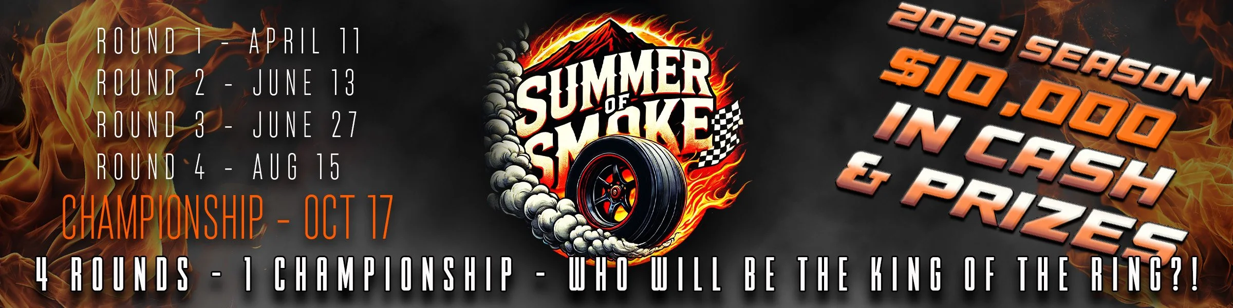 The Summer of Smoke Burnout Series Competition at THE RING is where horsepower meets pure chaos in an all-out battle of smoke and skill. This high-energy event brings together the best burnout competitors, each pushing their machines to the edge in a spectacle of roaring engines, screaming tires, and thick clouds of rubber smoke. Hosted by Jake Caldwell, the series promises non-stop adrenaline as he keeps the energy high and the competition fierce. With a crowd hyped for tire-melting action and drivers hungry for victory, every round is a showdown of throttle control and style.A minimum $500 cash prize is up for grabs at every round! If you crave the sound of revved-up engines and the sight of smoke-filled skies, THE RING is the place to be this summer!EVERY CLASS WINS CASH!